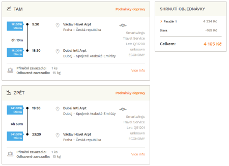 Vážení cestovatelé, jen na několik málo termínů nabízí společnost SmartWings přímé lety z Prahy do Dubaje…
